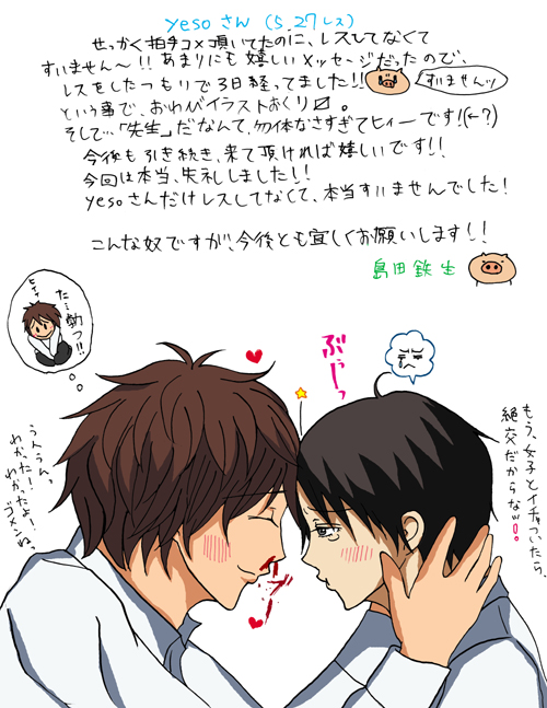 無料にて皆さんに御覧頂いているため、BL商業誌までは買ってられん世代の方が来てくださっているのか