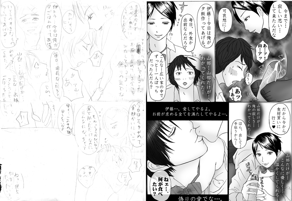 エロシーンはね、一応、こんなわいでも、構図とコマ位置を考えるんだよ。